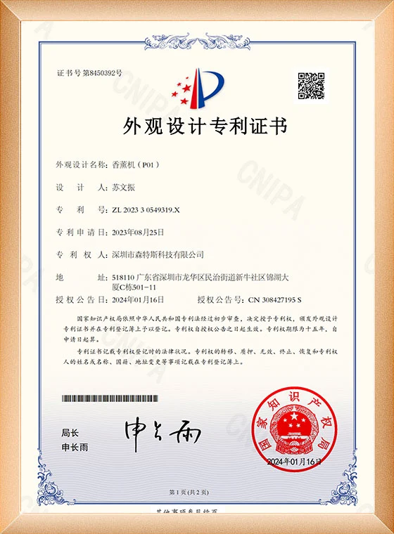 Au début de sa création, SCENTSEA attachait une grande importance à l’investissement en R&D. Nous croyons fermement que l'innovation continue est la compétitivité fondamentale d'une entreprise. Nous avons obtenu plus de 20 brevets de produits pour notrediffuseurs d'arômeset notre technologie de nanoatomisation à froid est déjà au premier rang de l'industrie.