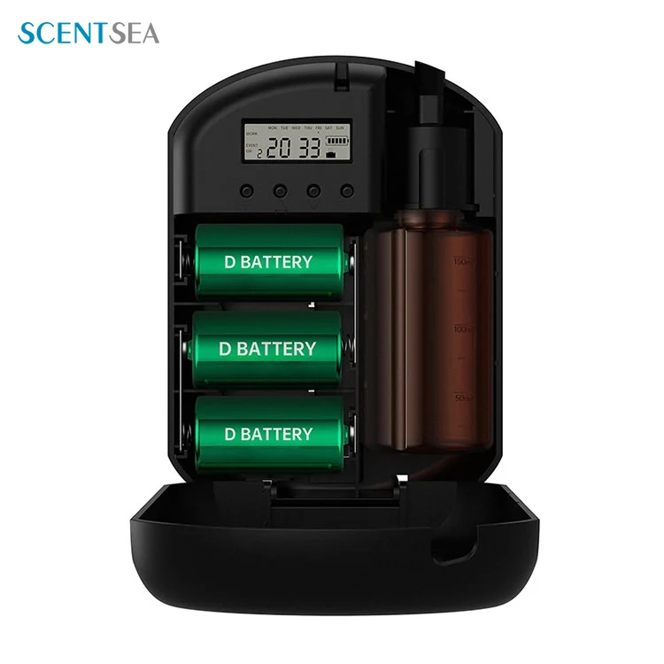 7. La conception à double alimentation de l'appareil (piles Type-C et 3 PCS D) garantit un service de parfumage continu même dans des endroits sans alimentation principale ou en cas de brève coupure de courant.
